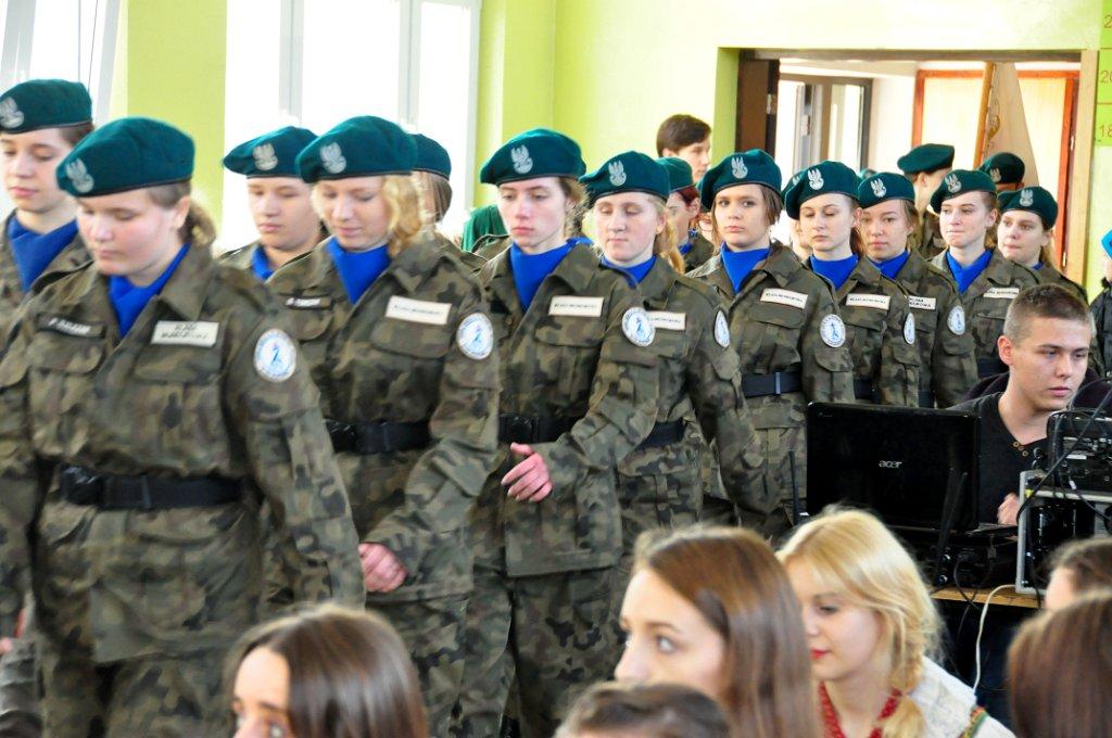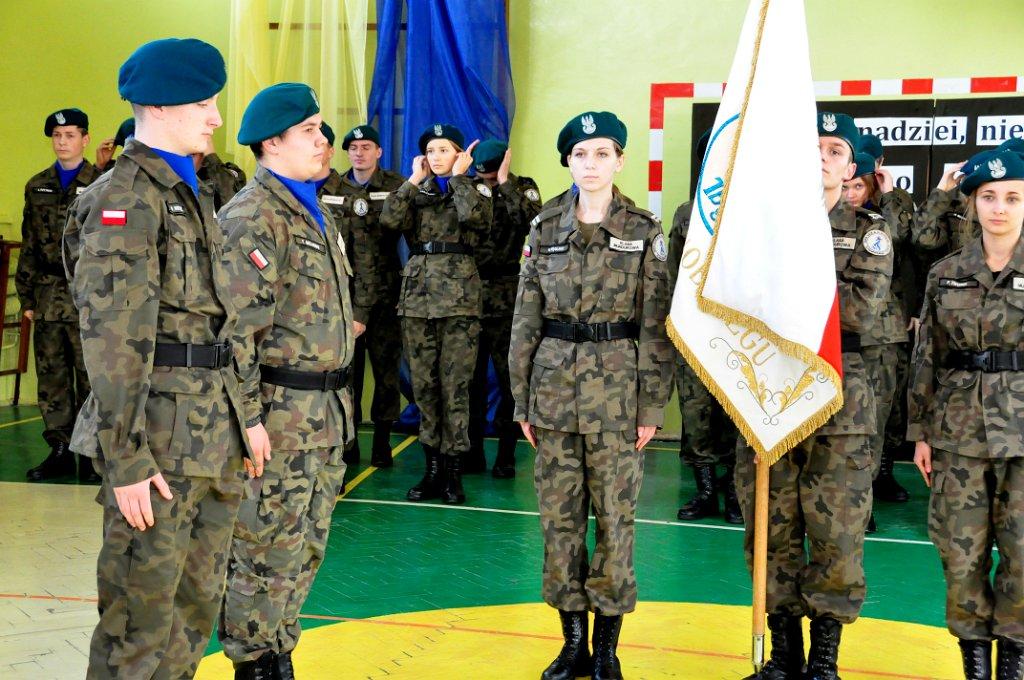 10 listopada 2014 r. tuż przed Świętem Niepodległości obchodziliśmy po raz kolejny Dzień Polski. Tego dnia miała miejsce uroczystość ślubowania klasy pierwszej mundurowej. Ślubowanie zostało poprzedzone uroczystą musztrą na boisku szkolnym. Klasa pierwsza w obecności rodziców, rodzin i zaproszonych gości zaprezentowała swoje umiejętności.
