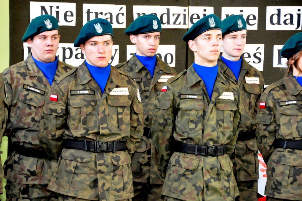 Na stopień: kadet – starszy szeregowy: Stępień Michał III F, Lis Karolina II E, Straburzyńska Gabriela II E, Szeląg Izabela II E, Golec Eliza II E, Rzepecki Dariusz II E, Gruszka Karol II E, Skibińska Marta I B, Pietrzykowski Bartosz I B.