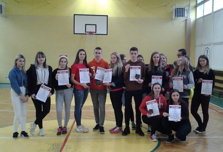 Uczniowie reprezentujący naszą szkołę w kategorii szkół ponadgimnazjalnych zdobyli pierwsze miejsce. Merytorycznie uczniów przygotował pan Leszek Jasiński, zaś pod względem WF pan Krzysztof Wiatros.