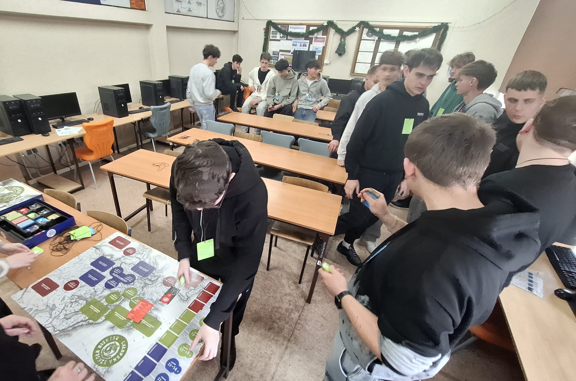 Kliknij aby przejść do galerii 28 stycznia klasa 3AT po raz kolejny wzięła udział w warsztatach z przedsiębiorczości, tym razem wprowadzających w tematykę ekonomii społecznej i społecznej odpowiedzialności biznesu. Zajęcia przeprowadziły pani Honorata Śmigała oraz pani Renata Wojtaszek, doradczynie zawodowe z Centrum Edukacji i Pracy Młodzieży w Tarnobrzegu. Uczniowie mieli okazję wcielić się w rolę biznesmenów zarządzających przedsiębiorstwem, wykorzystując do tego „Chłopską Szkołę Biznesu” – ekonomiczną, symulacyjną grę planszową, opracowaną przez Małopolski Instytut Kultury w Krakowie w ramach programu Muzeum Historii Polski pt. „Patriotyzm Jutra”. W trakcie gry należało wykazać się umiejętnością planowania, prowadzenia negocjacji handlowych i podejmowania szybkich, nierzadko ryzykownych decyzji. Zajęcia zaktywizowały wszystkich uczestników i dostarczyły ogromnych emocji, a zwycięzcy zostali nagrodzeni upominkami.