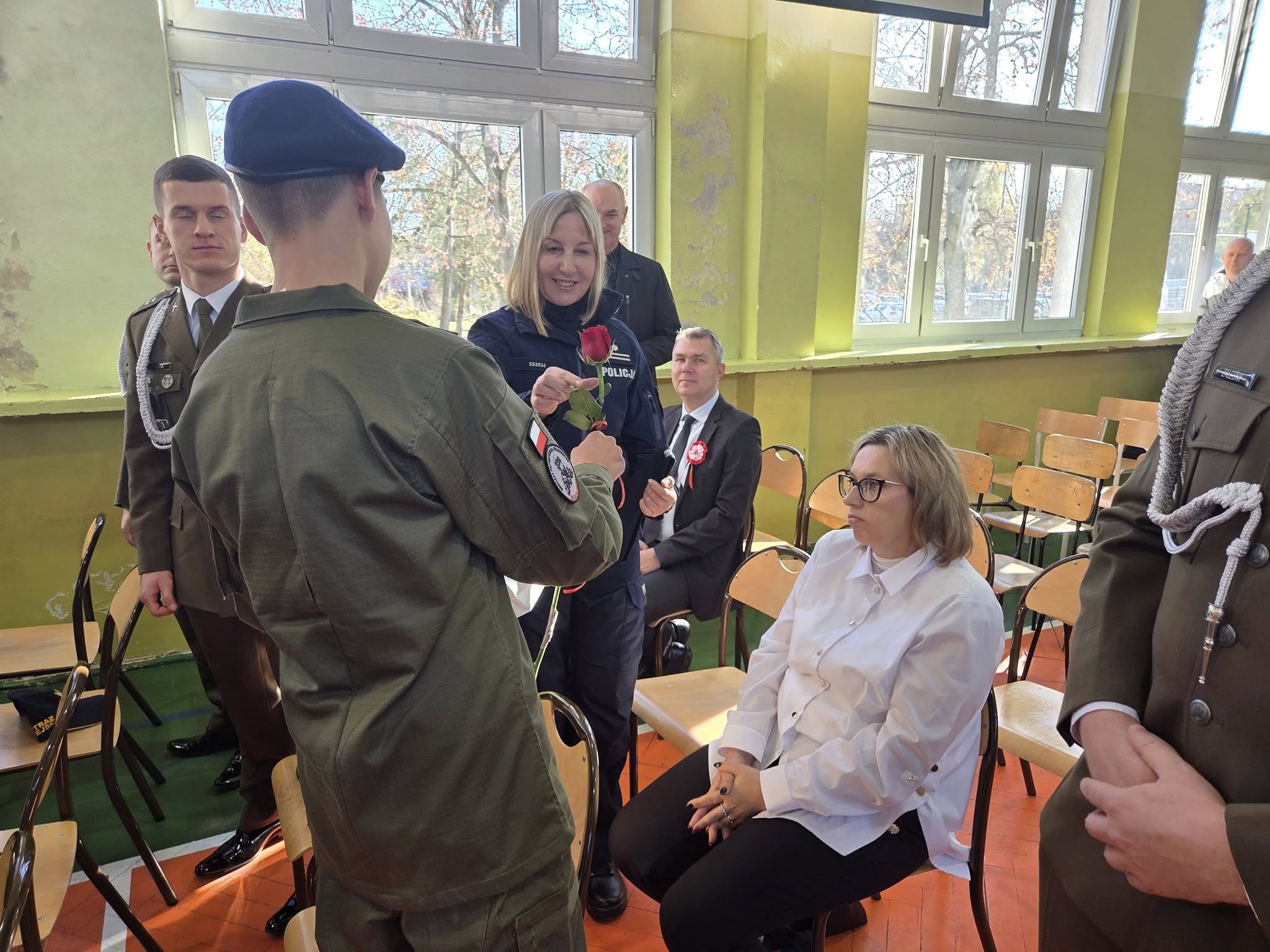 7 listopada br. w naszej szkole odbyła się wyjątkowa uroczystość — ślubowanie uczniów klasy pierwszej Oddziału Przygotowania Wojskowego (OPW) połączone ze szkolnymi obchodami Dnia Polskiego. Wydarzenie zgromadziło licznych gości, w tym przedstawicieli władz samorządowych, służb mundurowych, rodziców oraz społeczności szkolnej.